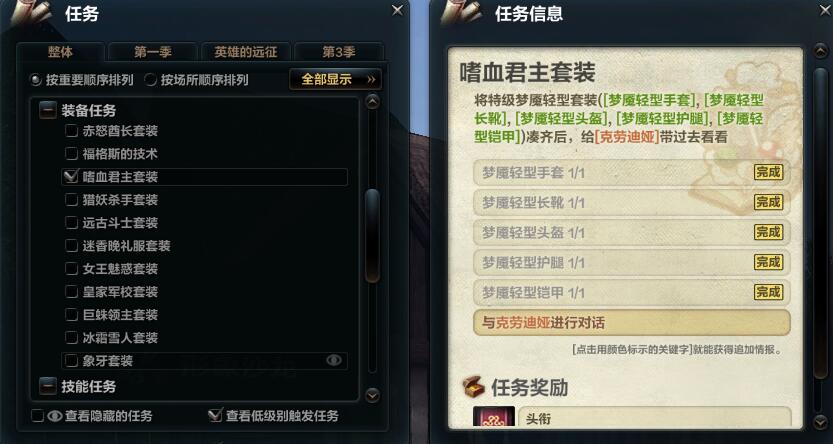3.修复装备任务"嗜血君主套装"异常的问题.